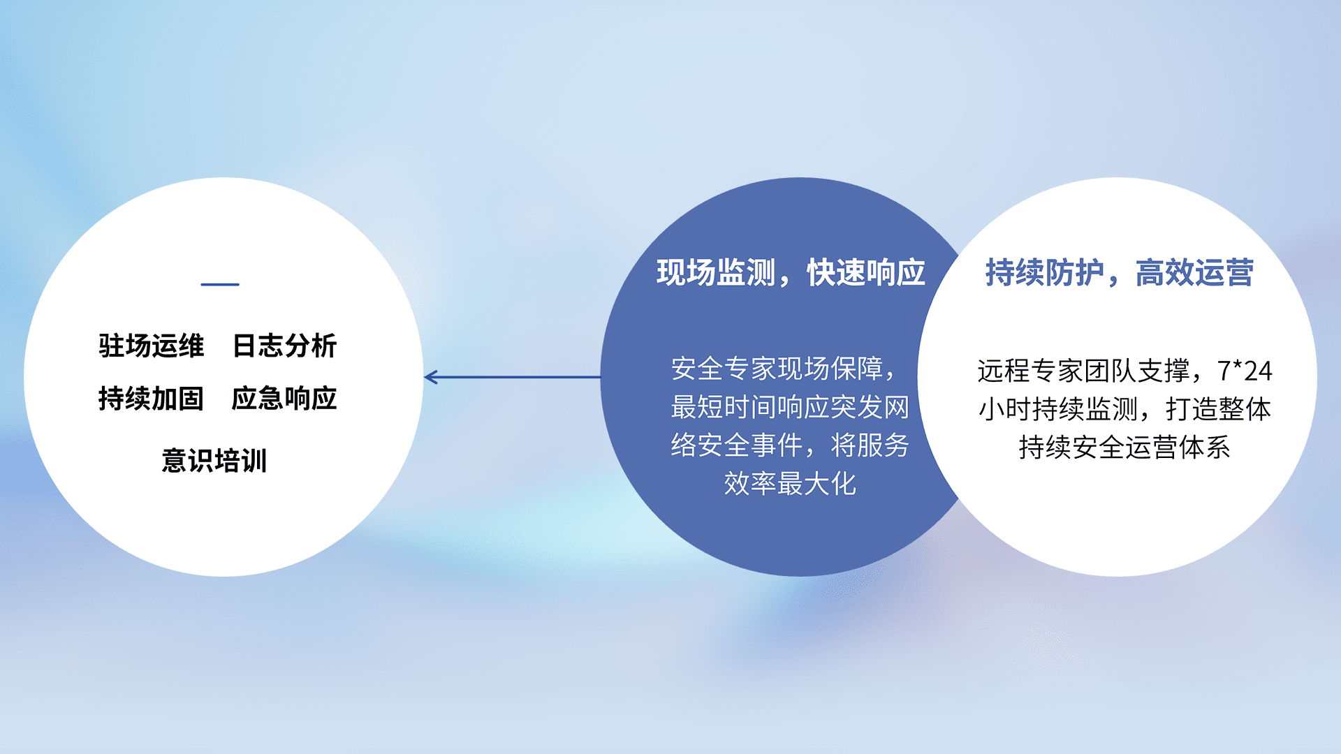 针对客户行业特性,,提供专属的一站式安全管理服务,,,帮助客户全面感知网络空间威胁,,通过安全专家的线上、、线下防护支持,,,实现风险闭环,,,,将安全保障常态化,,,为客户打造常态化安全运维运营服务。。。